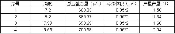 可以看出,亚铵产量随母液中总亚盐含量的增加而提高,一塔循环液中总亚盐含量达到